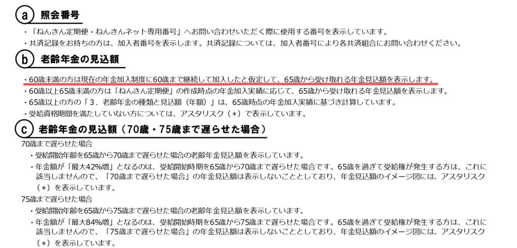最初に見たときは”これまでの加入実績に応じた年金額”だと思ったけど昨年から飛躍的に金額上がってて調べたら”60歳まで継続して加入したと仮定して”って書いてあって悶絶しました。